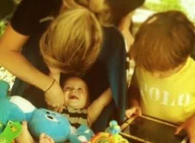 Claudia Leitte prestou uma homenagem para o filho caçula, Rafael, que completa seis meses. A cantora postou uma imagem no seu perfil das redes sociais em que aparece brincando com o bebê, enquanto o irmão Davi se diverte com um iPad. ''Há mistérios que não precisam ser revelados. Há fatos que não necessitam explicação. Que a minha fé transcenda meus anseios, de modo que eles estejam cegos diante da paz que só encontro mergulhada no conforto dos braços de Deus! Eh simples e eterno, basta ver pelos olhos de uma criança. Feliz 6 meses, Rafael!'', escreveu a musa do axé.
